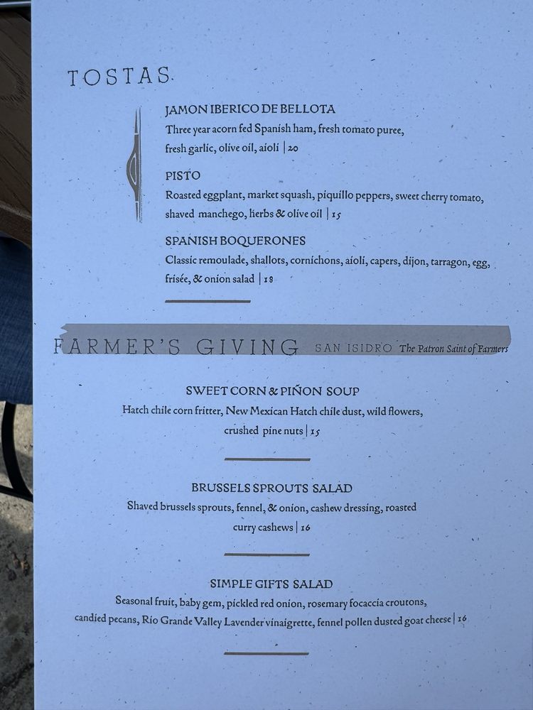 Four curated cheeses, apricot chutney, New Mexico honey, quince, cornichons, toast points, baguette, cracker bread