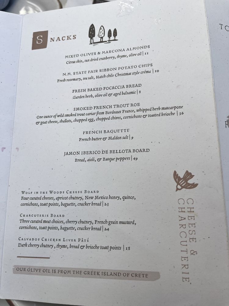 "Wolf in the Woods" is a hidden gem in San Diego, offering a unique mix of modern European tapas in a cozy and intimate setting. The menu boasts dishes like adovada, lamb chops, aguachile, steak tartare, corn soup, fish dishes, and octopus prepared to perfection. The service is top-notch, with attentive staff and a warm atmosphere that complements the delicious food. The restaurant's New Mexico-inspired decor adds to the overall charm, making it a must-visit spot for a romantic dinner or a special celebration. The establishment also provides vegan options and happy hour specials, catering to a diverse range of diners. If you're looking for a memorable dining experience with exceptional food and a welcoming ambiance, Wolf in the Woods is the place to be.